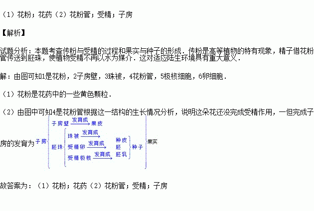 (2)图中4是 ,根据这一结构的生长情况分析,说明这朵花还没完成 作用.这一作用一经完成, 将发育成果实.