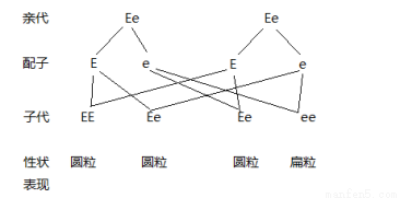 (2)图乙表示植物的有性生殖,经过精子和卵细胞结合成受精卵,由受精卵发育成新的个体。生物的性状是由基因控制的,可以通过配子代代相传,显性基因控制显性性状,隐性基因控制隐性性状,当一显一隐时则显性性状控制。已知所结种子全是圆粒,后代中既有圆粒,又有扁粒,这样可以说明圆粒是显性性状,而扁粒表现的是隐性性状。据题意即可亲代的基因组成是Ee,后代是可以既有圆粒,又有扁粒的出现,根据遗传规律后代中出现的圆粒基因是EE或是Ee。图解如下: