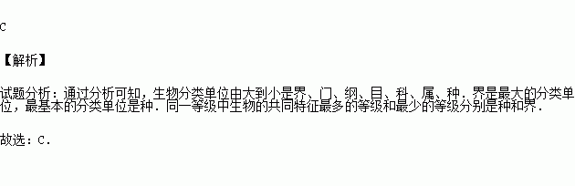 (2014•通辽)在生物分类的七个等级中,同一等级中的生物,共同特征最多和最少的等级分别是( )