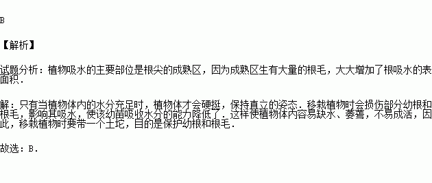 B.在移栽过程中损伤了幼根或根毛,使该幼苗吸收水分的能力降低了