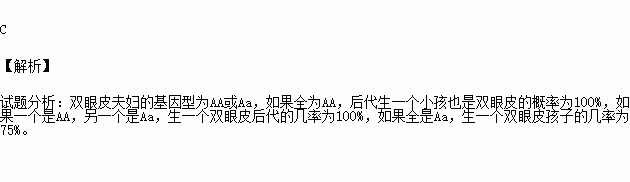已知一对夫妇都是双眼皮(常染色体上的显性基因控制),请问他们生一个小孩也是双眼皮的概率为