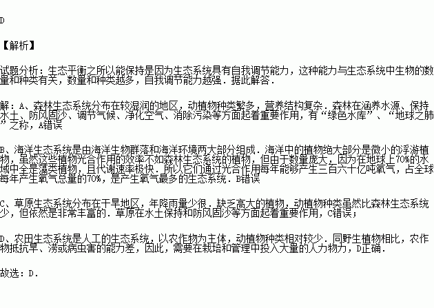 C.海洋生态系统 D.草原生态系统