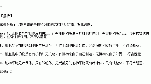 B.细胞壁不能控制细胞的生理活性