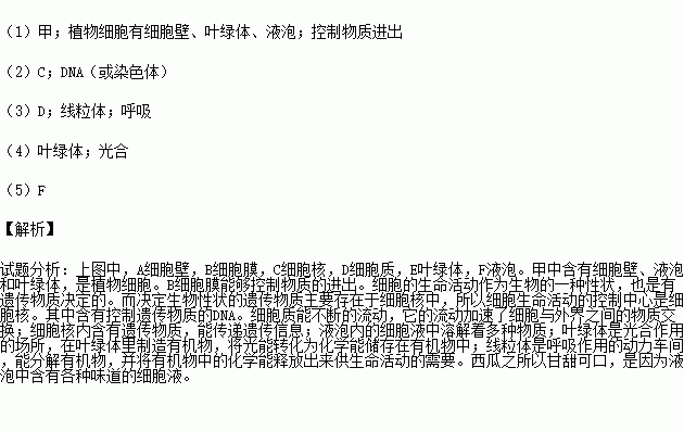 (5)西瓜之所以甘甜可口,主要是______(填字母)中含有大量细胞液。