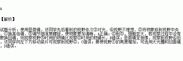A.按照正确的操作顺序,该同学先后看到的视野依次是③④②①⑤