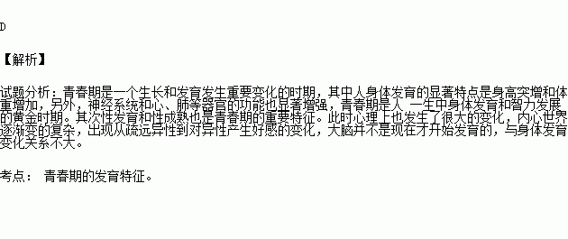 处于青春期的男孩和女孩,身体发育发生了明显变化,其特征不包括