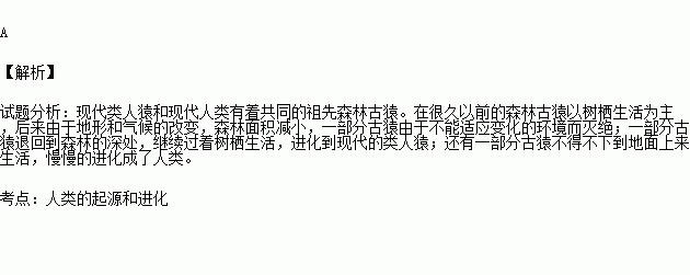 A.人类的祖先是森林古猿 B.现代类人猿与人类没有共同祖先