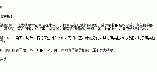 A.藻类植物 B.蕨类植物