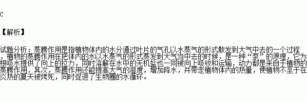 A.光合作用 B.蒸腾作用 C.呼吸作用 D.吸收作用