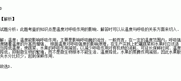 在冷藏的条件下,水果的保鲜时间长,对这种现象的解释不正确的是( )