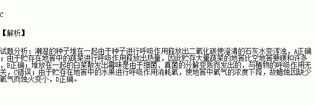 A、大量潮湿种子周围的空气可使澄清的石灰水变浑浊