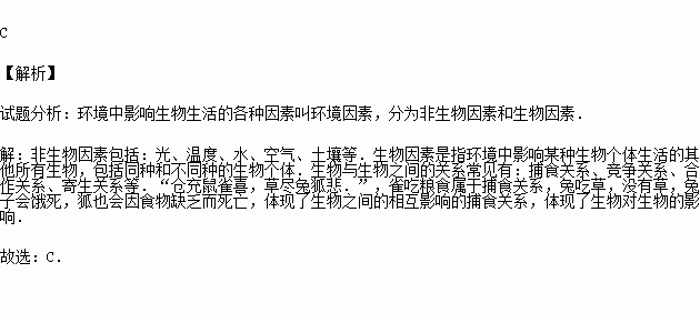 C.生物因素对生物的影响 D.环境因素对生物的影响