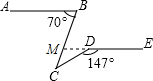 分析:反向延长DE交BC于M,先根据平行线的性质求出∠BMD的度数,再根据平角的定义得出∠CMD的度数,根据三角形外角的性质即可得出结论.