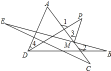 ∵∠1=∠A+∠4=∠P+∠3,∠AMB=∠B+∠2,∠2=∠A+∠ADB,