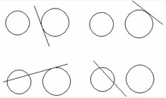 (2)请你类比一条直线和一个圆的三种位置关系,在图①、②、③中,分别各画出一条直线,使它与两个圆都相离、都相切、都相交,并在图④中也画上一条直线,使它与两个圆具有不同于前面3种情况的位置关系.