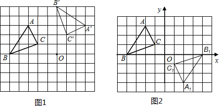 (1)在图1中△ABC绕点O顺时针旋转90°得到△A′B′C′;