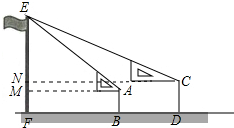 分析 过点A作AM⊥EF于M,过点C作CN⊥EF于N,则MN=0.1m.由小明站在B点测得旗杆顶端E点的仰角为45°,可得△AEM是等腰直角三角形,继而得出得出AM=ME,设AM=ME=xm,则CN=(x+6)m,EN=(x-0.1)m.在Rt△CEN中,由tan∠ECN=$\frac{EN}{CN}$=$\frac{\sqrt{3}}{3}$,代入CN、EN解方程求出x的值,继而可求得旗的高度.