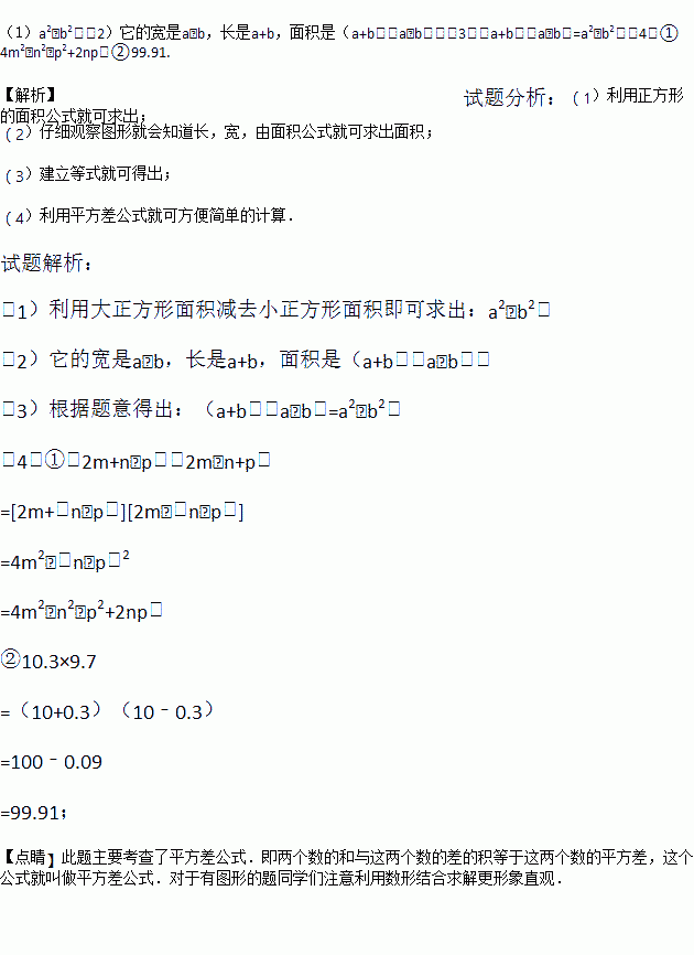 (1)如图,可以求出阴影部分的面积是 (写成两数平方差的形式);