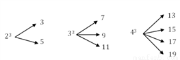 分别可以如图所示的方式“分裂”成2个,3个和4个连续奇数的和.若