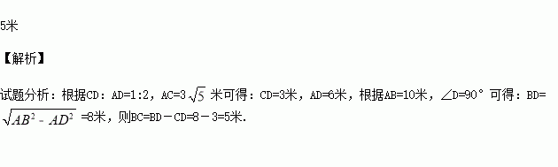 如图,斜面AC的坡度(CD与AD的比)为1:2,AC=