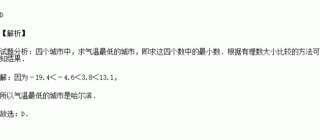 (2007•武汉)下表是我国几个城市某年一月份的平均气温,其中气温最低的城市是( )