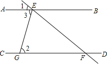 点评:本题考查了平行线的性质.根据邻补角和角平分线的定义求得∠3的度数是解题的关键.