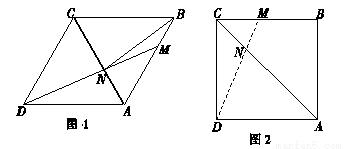 在边长为1的菱形ABCD中,动点M从点A出发,沿A→B→C向终点C运动,连接DM交AC于点N.