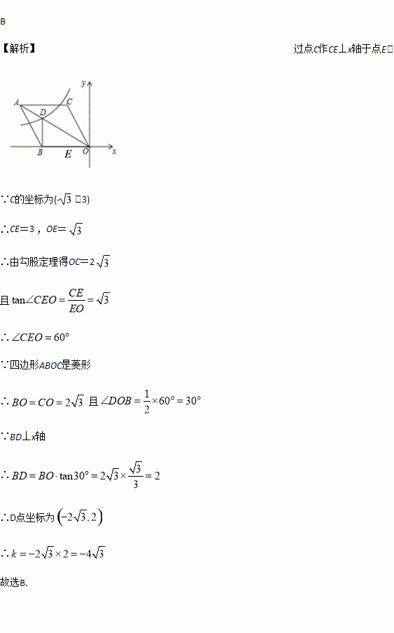 的图像与菱形对角线AO交于D点,连接BD,当BD⊥x轴时,k的值是( )