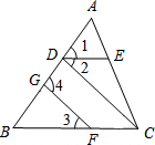 ∴∠DOE=∠COE+∠COD=$\frac{1}{2}$∠AOC+$\frac{1}{2}$∠BOC=$\frac{1}{2}$∠AOB,