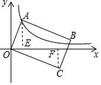 分析 设A(a,b),则ab=$\sqrt{6}$,分别过A,C作AE⊥x轴于E,CF⊥x轴于F,根据相似三角形的判定证得△AOE∽△COF,由相似三角形的性质得到OF=$\sqrt{3}$b,CF=$\sqrt{3}$b,则k=-OF•CF=-3$\sqrt{6}$.