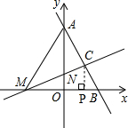 (2)过点C作CP⊥x轴于点P,即可知CP∥OA,根据S△MAC=2S△MBC知$\frac{AC}{BC}$=$\frac{OP}{BP}$=2,由OB=3即可得OP的值及点C坐标,将点C坐标代入直线MN:y=kx+4k即可求得k.