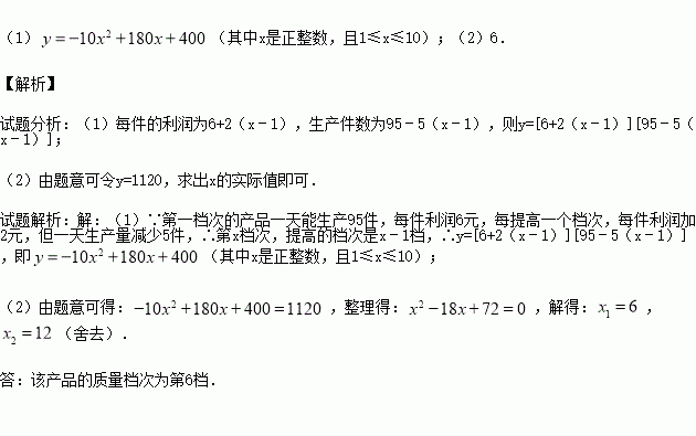 某工厂生产的某种产品按质量分为10个档次,第1档次(最低档次)的产品一天能生产95件,每件利润6元.每提高一个档次,每件利润增加2元,但一天产量减少5件.