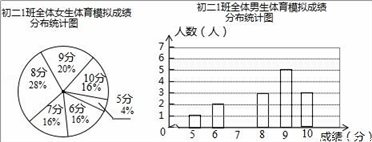 (2)补全初二1班男生体育模拟测试成绩统计图,并把相应的数据标注在统计图上;