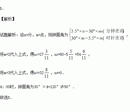 钟面角是指时钟的时针与分针所成的角,如果时间从下午2点整到下午4点整,钟面角为90°的情况有( )