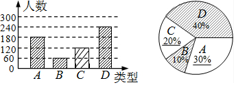 AÀàËùÕ¼µÄ°Ù·Ö±ÈÊÇ$\frac{180}{600}$¡Á100%=30%£»