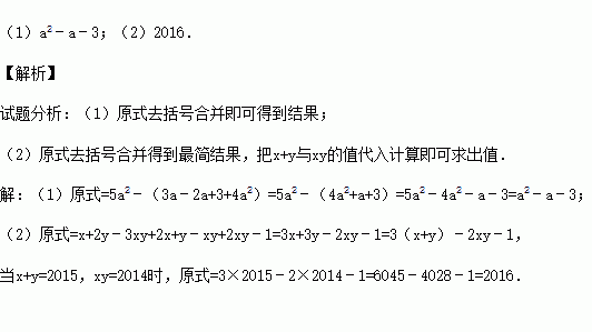 (2)先化简,再求值:(x+2y﹣3xy)﹣(﹣2x﹣y+xy)+2xy﹣1,其中:x+y=2015,xy=2014.