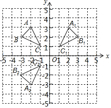 解:(1)如图所示:A(-2,3),B(-3,2),C(-1,-1);