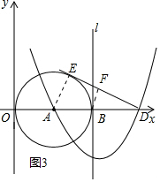 如图3所示:当BF⊥ED时,连结AE、过点B作BF⊥DE,垂足为F.![]()
