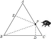 如图是一个等边三角形木框,甲虫P在边框AC上爬行(A,C端点除外),设甲虫P到另外两边的距离之和为d,等边三角形ABC的高为h,则d与h的大小关系是 .![]()