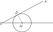 分析:根据题意画出圆与直线OA相切是的图形,连接DM,根据∠AOB=30°求出OM的长,再根据直线与圆相交、相离的条件即可得出结论.