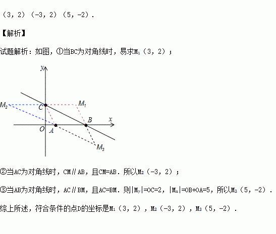 如图,在平面直角坐标系中,点A的坐标为(1,0),点B的坐标为(4,0),点C在y的正半轴上,且OB=2OC,在直角坐标平面内确定点D,使得以点D、A、B、C为顶点的四边形是平行四边形,请写出点D的坐标为 .