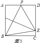 (2)当PB为底时,E在BP的垂直平分线上,与正方形的边交于两点,即为点E;