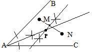 分析:到AB,AC距离相等的点,在∠BAC的平分线上,到M,N距离相等的点在线段MN的垂直平分线上,那么所求点应是所得两条直线的交点.