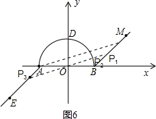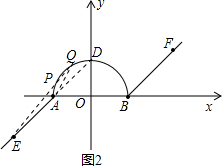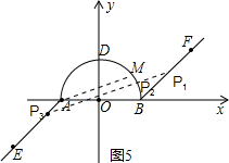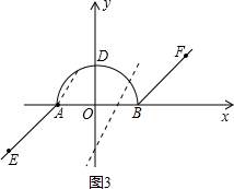 分析 利用直径所对的圆周角是直角,从而判定三角形ADB为等腰直角三角形,其直角边的长等于两直线间的距离,可利用数形结合的方法得到当直线与图形C有一个交点时自变量x的取值范围;