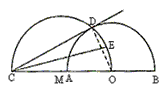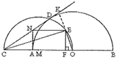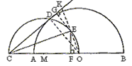 | 已知:AB是半圆O 的直径,点C在BA的延长线上运动(点C与点A不重合),以OC为直径的半圆M与半圆O交于点D,∠DCB的平分线与半圆M交于点E。 |