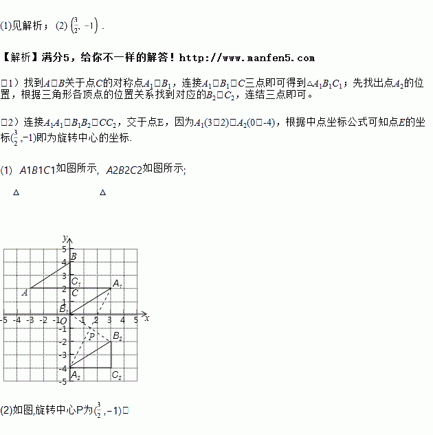 ,请直接写出旋转中心的坐标.
