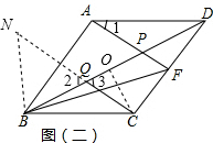 (2)由翻折知:△CBD≌△ABD,根据全等三角形的性质得到∠DBC=∠BDC=30°,进一步得到DF=$\frac{1}{2}$AD=$\frac{1}{2}$CD,如图(二),作CO⊥BD于O,得到BQ=OQ=$\frac{1}{4}$BD,延长CQ至N,使QN=QC,连NB,根据SAS可证△QNB≌QCO,△NBC≌△FCB,从而得到FB=NC=2QC.
