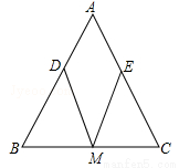 如图,已知:△ABC中,AB=AC,M是BC的中点,D、E分别是AB、AC边上的点,且BD=CE.求证:MD=ME.