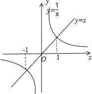 的交点坐标为(1,1)和(-1,-1),然后画图象,再观察函数图象求解.