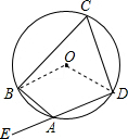 解答 解:∵∠BOD=130°,∴∠C=$\frac{1}{2}$∠BOD=65°.∵四边形ABCD是圆内接四边形,∴∠BAE=∠C=65°.